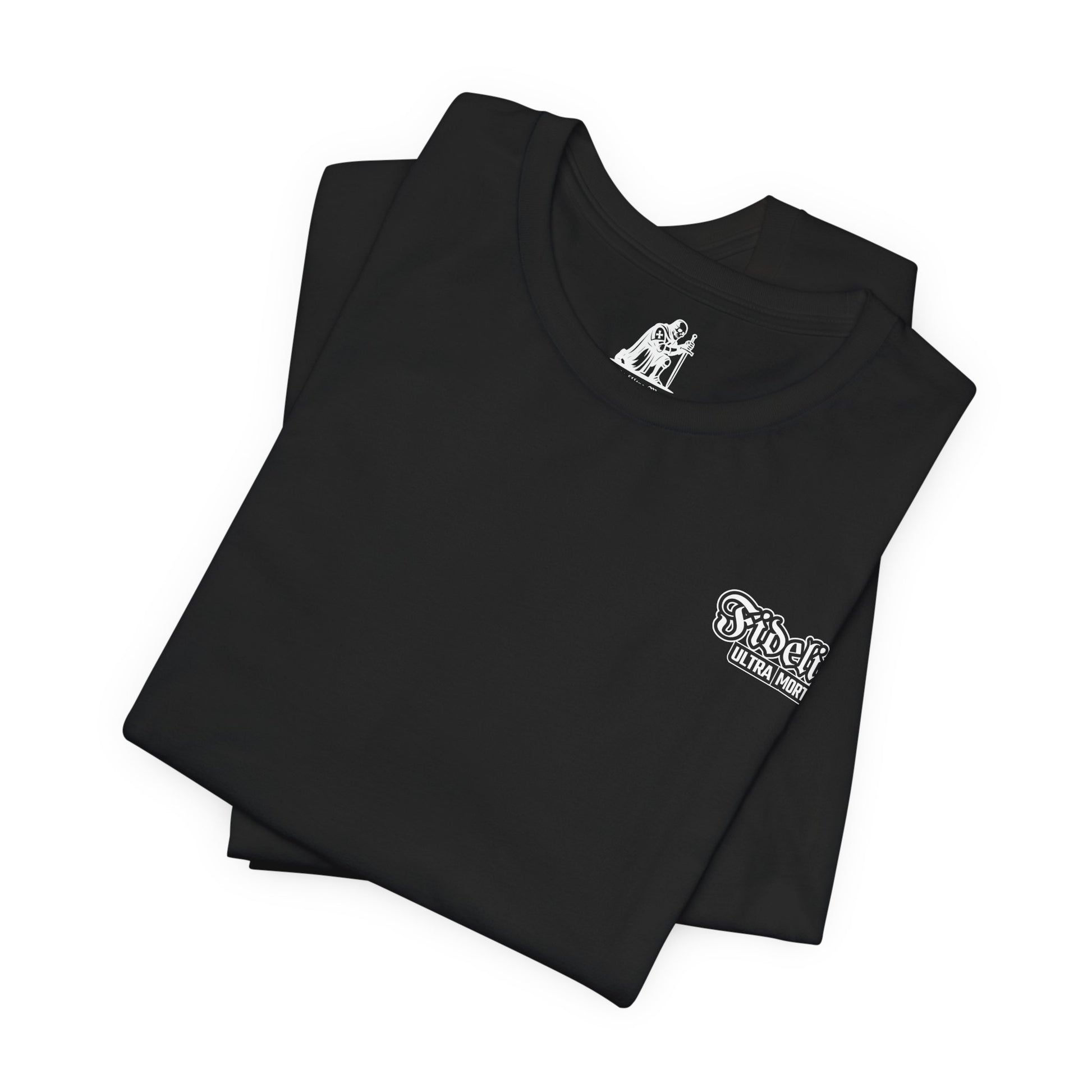 Isaiah 40:8 Praying Knight Christian T-Shirt | The Word of God Stands Forever | by Fidelis Ultra Mortem | Bella+Canvas 3001 Black Tee